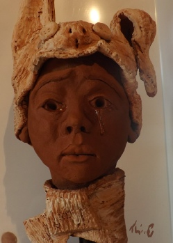 Sculpture : Une sculpture triste qui est en fait pleine d’humour. C’est réjouissant d’autant plus que le ressenti nous rapproche de l’illustration, de la bande dessinée, du dessin à mi-chemin entre le Fantasy-fantastique et le croquis d’expression. Cette sculpture nous fait entrer dans son monde, son émotion, sa tristesse et sa drôlerie irréelle. Comme venue d’ailleurs. Comme venue d’un univers pas tout-à-fait terrestre.